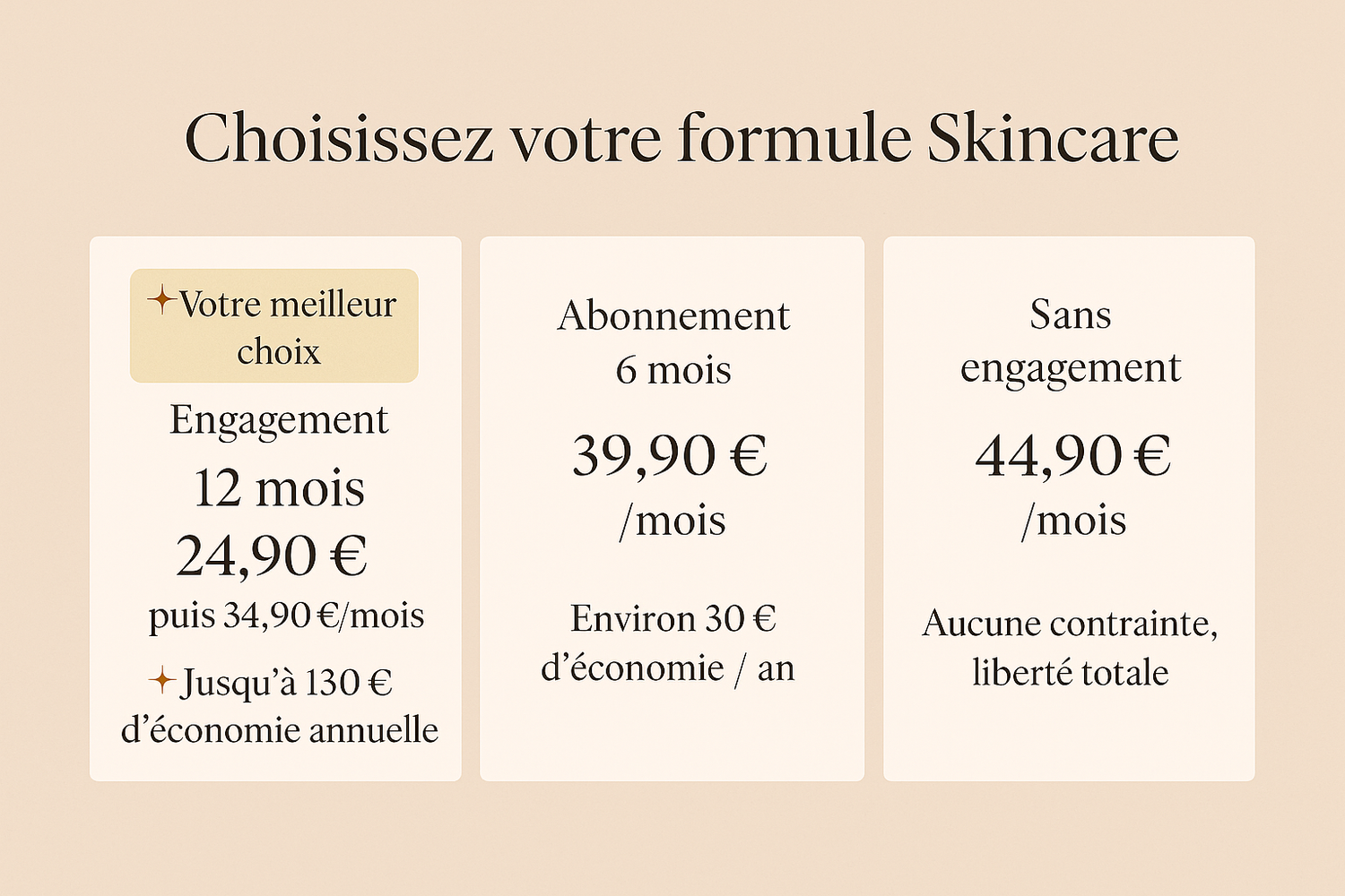 ✅ Choisis la formule qui te correspond le mieux : avec ou sans engagement, tu reçois chaque mois ta box skincare 🌿 coréenne directement chez toi.