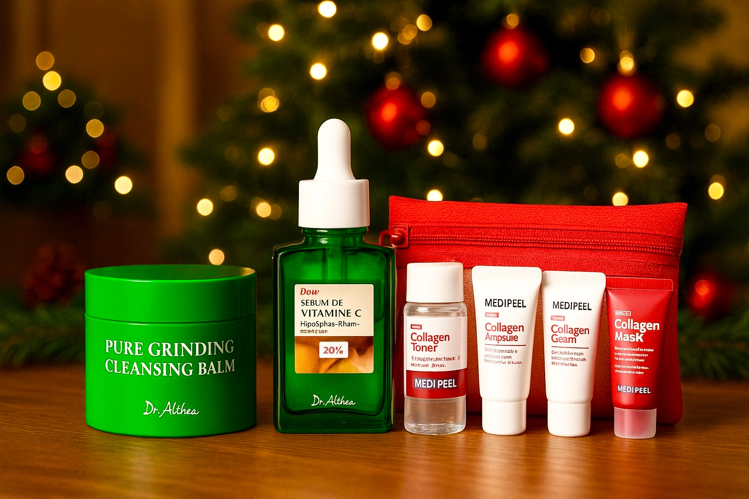 Chaque box contient une routine skincare coréenne complète : des soins premium, des découvertes exclusives et un design élégant qui fait toujours son effet sous le sapin 🎄