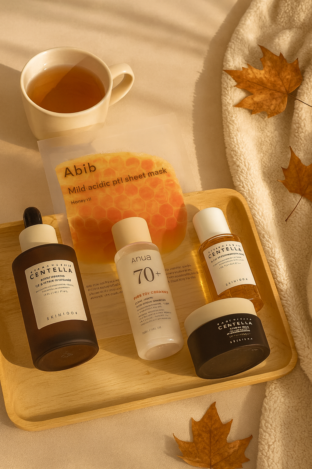 La box Autumn Dusk réunit 5 soins coréens incontournables dans une ambiance douce cappuccino-beige, pensée pour apaiser et sublimer toutes les peaux sensibles.